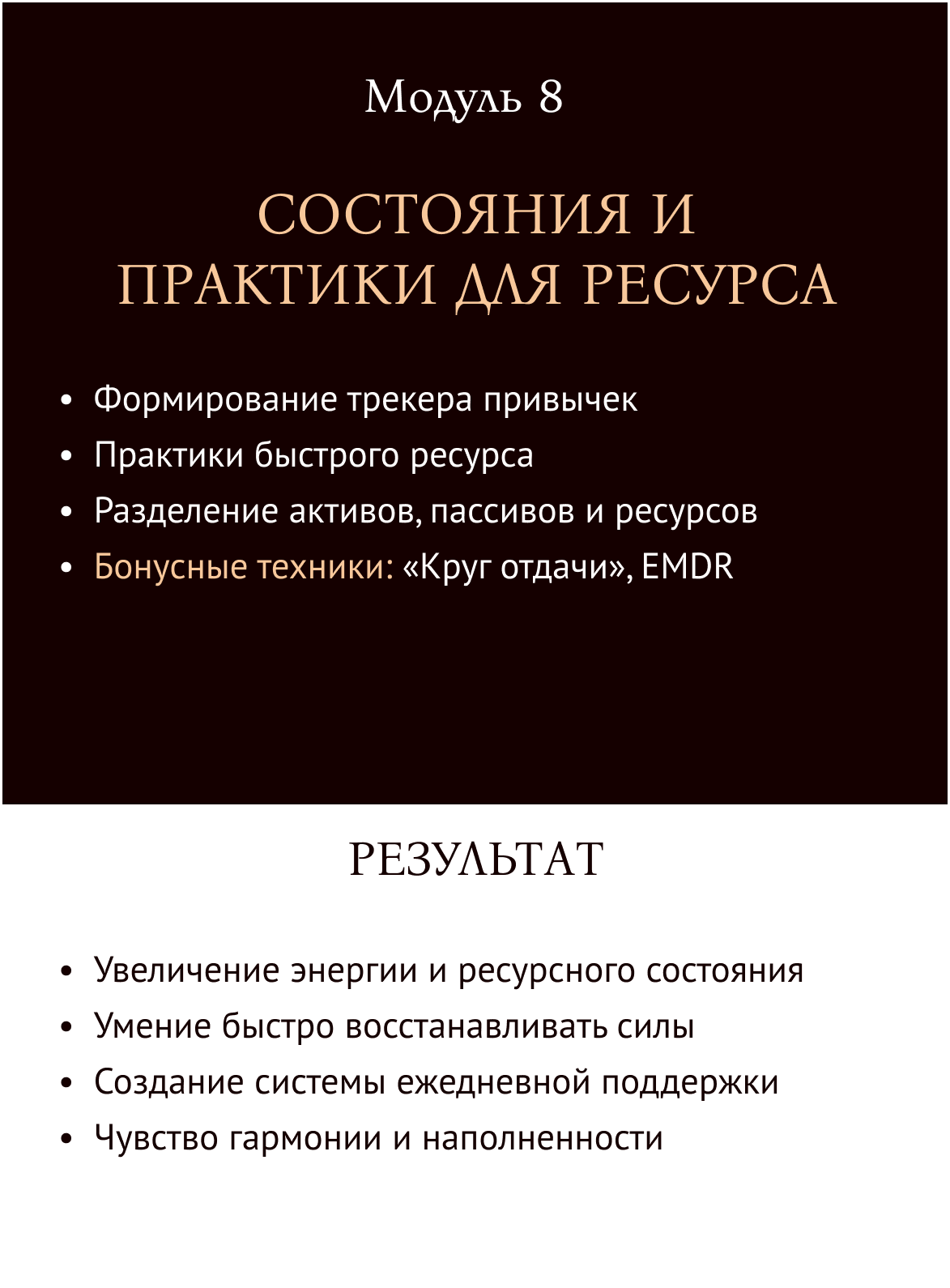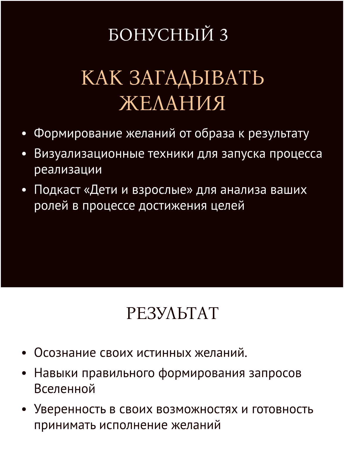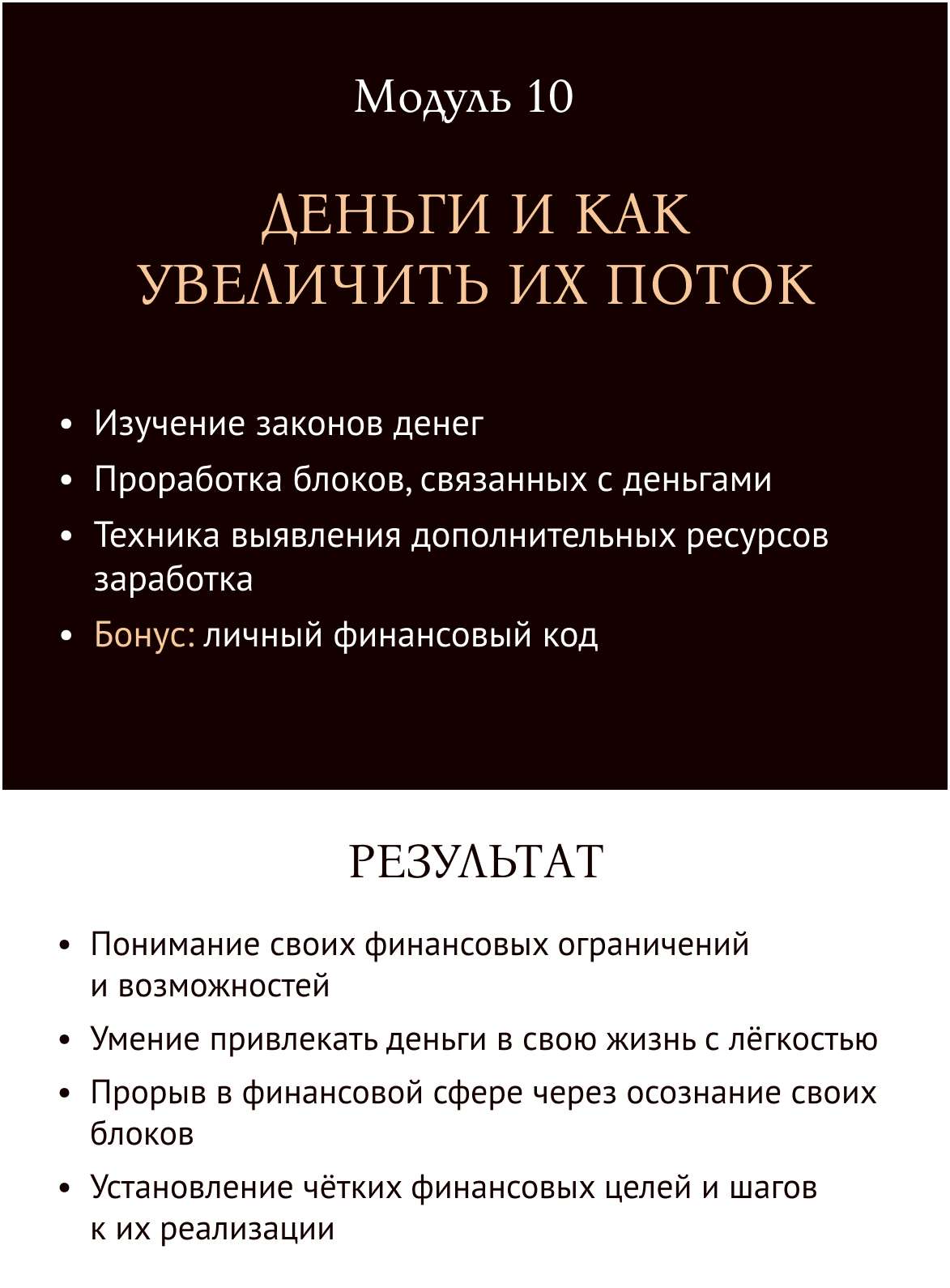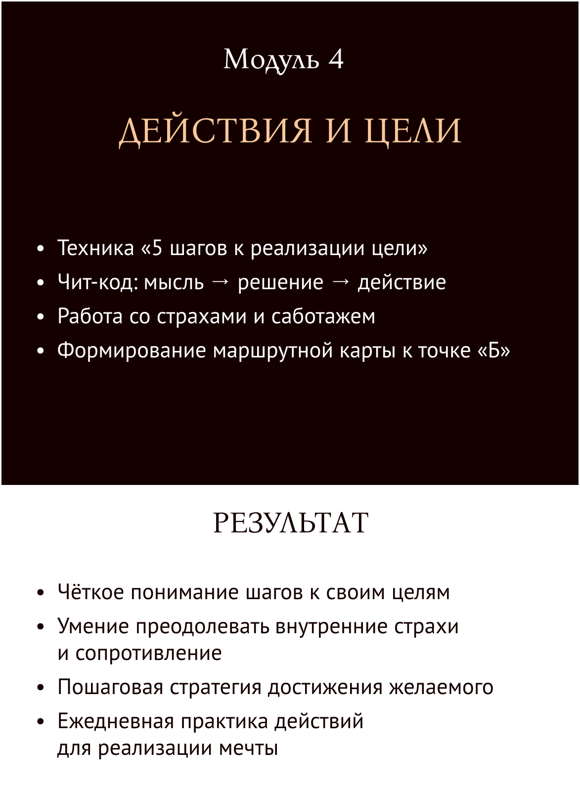 В каждом из этих пунктов работа с внутренними убеждениями, целями и система действий, которая помогла мне. И я готова отдать ее вам!